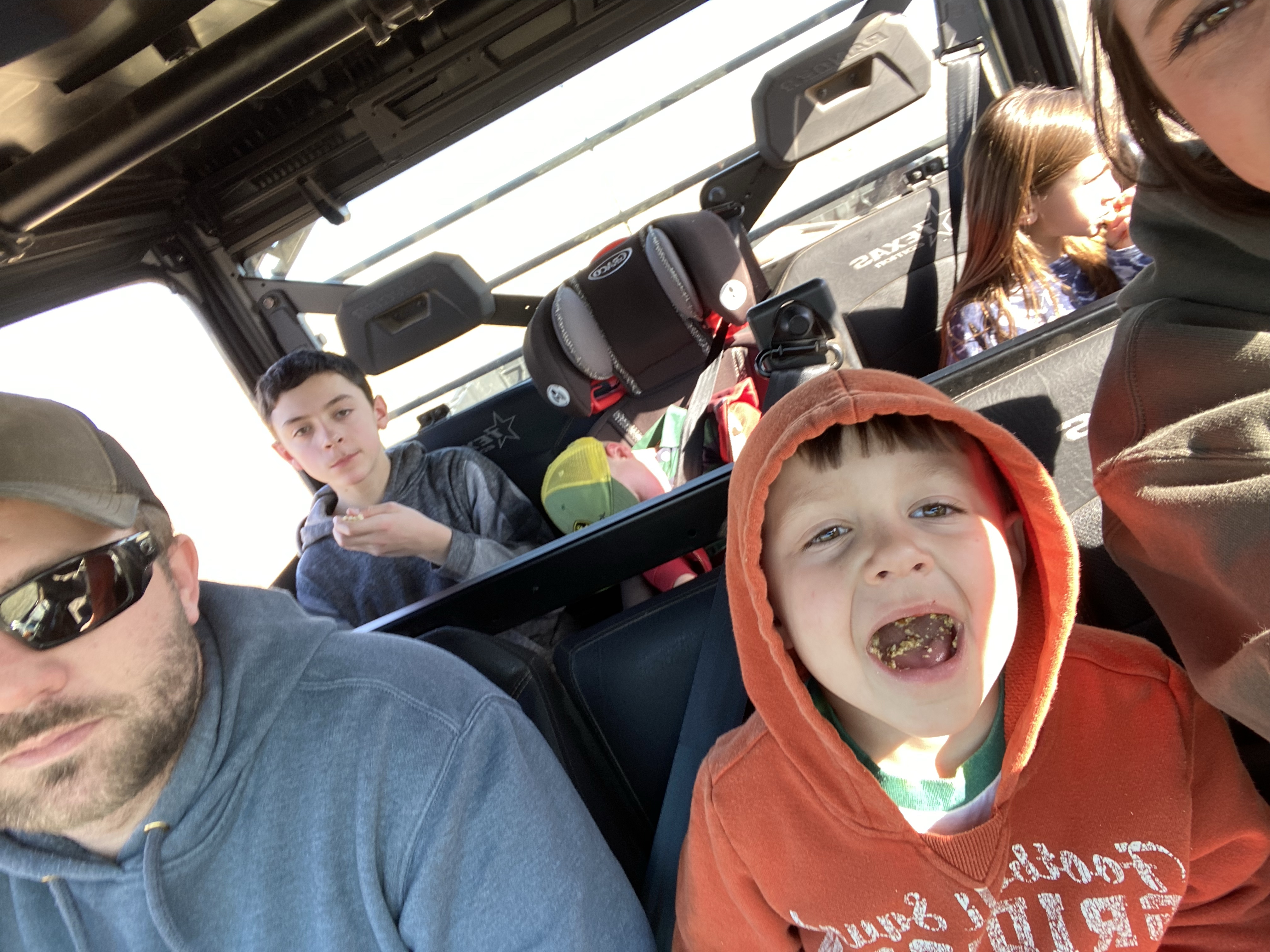 Wow, was it a beautiful weekend! We spent all our free time outside and it was just what we needed! We had our nephew’s birthday party, which was great to get together with everyone. Then Sunday, we went to church and Sam joined us for the first time in a long time. All I have to say is he most likely will not be coming back unless he has to! I always bring a bag of toys and snacks for the kids, so it keeps them busy. Although I am not sure if that makes things worse than if I didn’t bring toys. Maybe they would be quieter? Sam might be a little more picky when it comes to the kids volume in church. Yes there were times where they were loud, but some of the times that he told them to quiet down I thought they were okay. Heath, was being a little stinker in church. He decided to exit the pew on the side we were not sitting on. Well that had trouble written all over it. 😬 Sam decided to go get him…well that just made it a game for Heath. He took off towards the front and was going in and out of the pews just laughing and being ornery. All while Sam was trying to get him. Literally everyone was laughing while watching it all go down, and the pastor was trying to control his laugh while pushing through his message. Sam finally got Heath, as we are all staring at him laughing. He went downstairs with him and we all tried to contain our laughter. Not going to hold my breath that he will be with me on Sunday for church. After church we came home had some lunch and then packed up some snacks for a ranger ride while looking for sheds! We made out pretty well with the number of sheds we found. The kids were pretty excited!