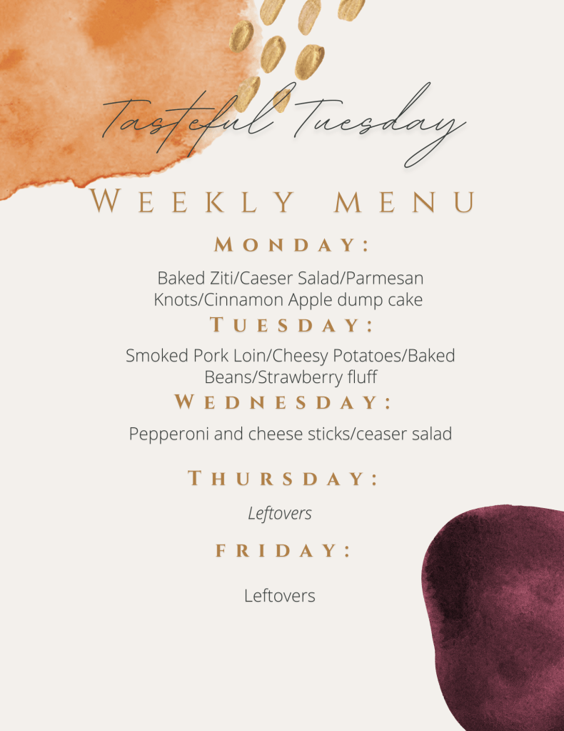 Another week and this one is packed with some favorites! One new recipe for the main dish and one new one for the dessert!