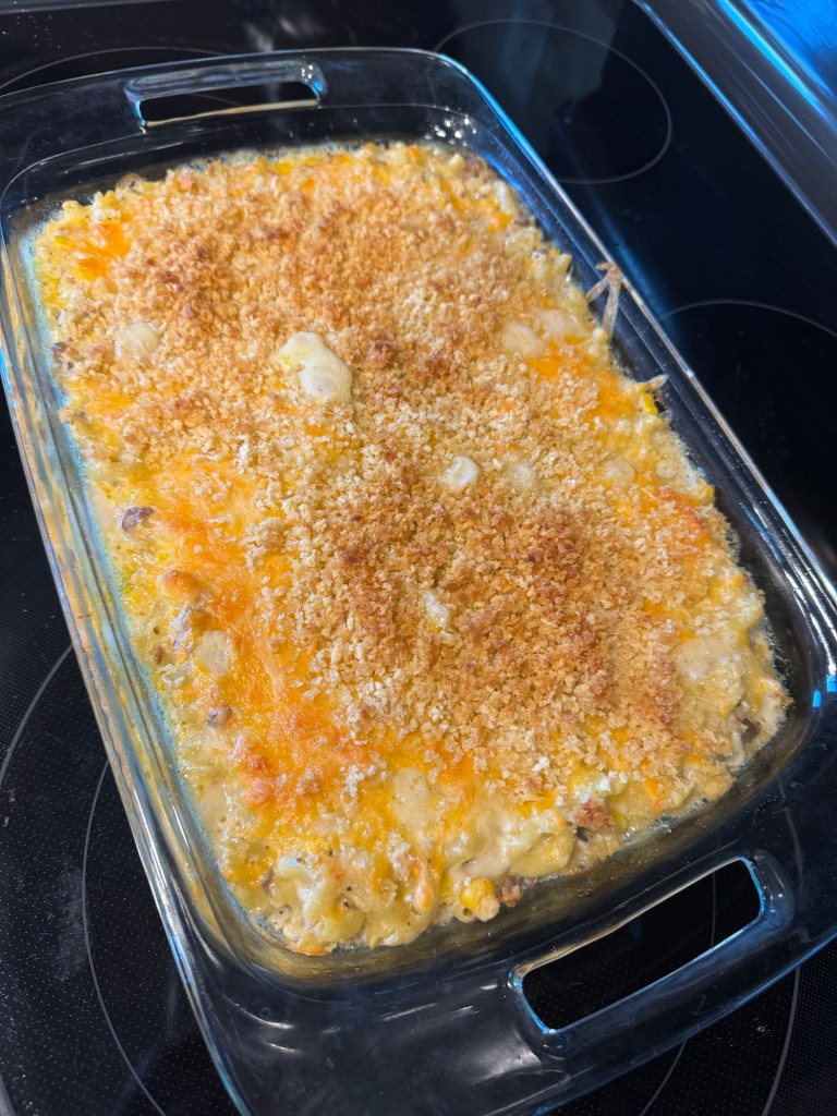 Bake for 30-40 minutes until the breadcrumbs are golden brown and the filling bubbles.