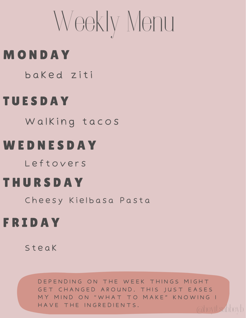 A couple repeats from last week, because we didn’t get them made. The beef and noodles made so much…I am good if I don’t have anymore for awhile. Baked ziti is one of our faves, and you can never go wrong with walking tacos!